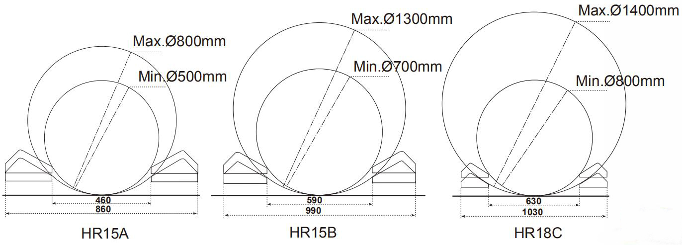 Questa serie di martinetti idraulici a rulli dispone di 3 diversi modelli HR15A, HR15B, HR18C per rulli di diverse dimensioni.